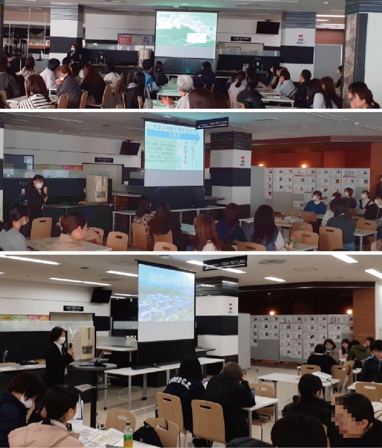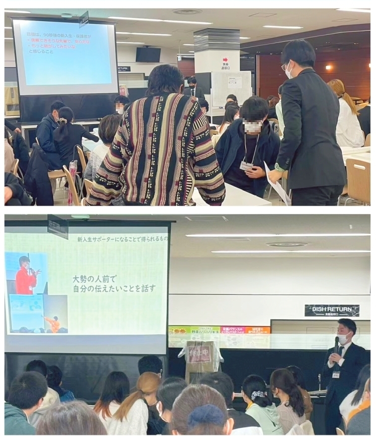 - 入学準備説明会やオンライン相談会で、大教の生活について新入生や保護者からの質問等に答える