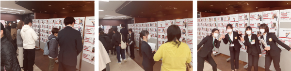 | 会場には新入生サポーター(先輩大教生)のプロフィールボードがあります。「専攻・コース」は勿論、「自宅 or 一人暮らし or 寮生」「クラブ・サークル」「アルバイト」「将来進路」なども載っているので、話を聞きたい先輩を見つけて突撃しましょう!見つけられなかったり、自分から声をかけにくい場合、私達から声をかけますので安心してくださいね☆ |