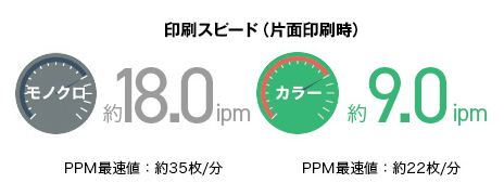 エコタンク搭載モデルはインクジェット方式なのでウォームアップ時間が短く、最初の1枚から高速で印刷できます。一度の印刷が少量なら、レーザープリンターより速く印刷できる場合があります。