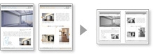 2枚のA4原稿をA4 1枚に縮小し割り付けてコピーできます。両面印刷でもできます。(B5原稿でも可能です。) |