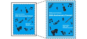 周囲に余白(フチ)なしでコピーします。画像を用紙から少しはみ出るくらいに拡大して、用紙端に余白が出ないように印刷します。 |