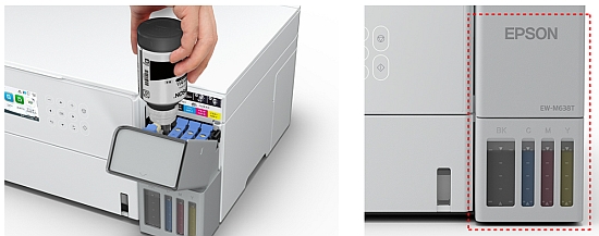 タンクとインクボトルの注入口の形状が色ごとに異なるので、入れ間違いなし! |