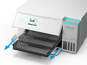 プリントのとき、排紙トレイを自動でオープンします。排紙トレイを引き出す手間が省け、離れた場所からプリント指示を出したときなどでも、プリンター近くまで行く必要がありません。 |